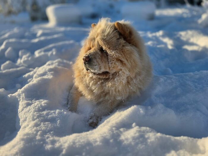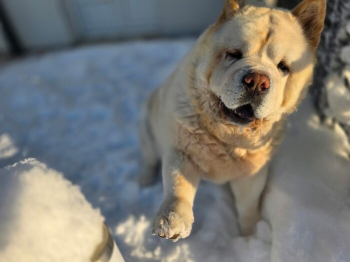 Armani prend l’air d un chow un peu gavé par l enthousiasme de sa copine