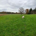« Il a passé deux heures à tourner avec Mia dans le terrain, il a semblé apprécier cette liberté. Sa queue reste droite, comme celles de Louki et de Gabin » nous dit Evelyne.