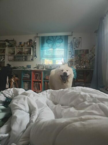 Elle ne pouvait plus se lever, je devais l’aider, elle refusait de sortir, je devais insister. Vendredi elle m’a réveillée à 5 h du matin, en général c’était pour l’aider pour la pause pipi. Elle avait une diarrhée noire, elle a vomi, mais ce n’était pas de la bile. J’ai envoyé un message à la vétérinaire, lui expliquant ses souffrances et tout ce qui se passait. Elle est venue à 15h30. Jana a rejoint Even et tant d’autres au paradis des nounours.