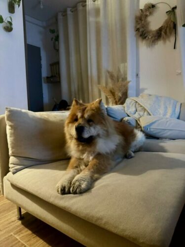 Kuma, la chowchotte , lui a fait un accueil mitigé, peu habituée à partage sa maîtresse, mais , d’un naturel peu jaloux, elle s’habitue… Il faut dire que Chuy n’est pas envahissant.