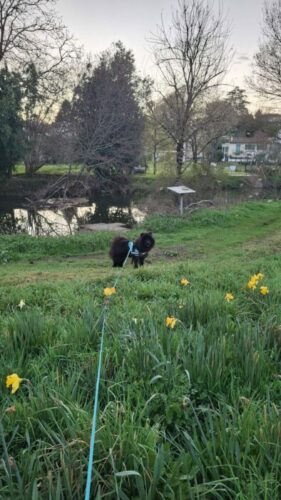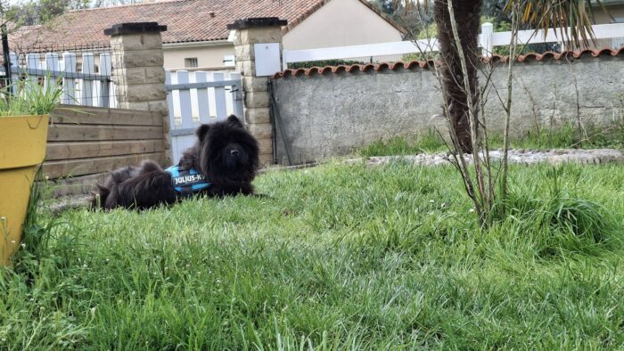 Claire nous donne d’excellentes nouvelles de Chuy. Il a reçu sa première injection de Librela et il semble bien que cela lui fasse de l’effet dès à présent. Il aime les (courtes) balades autour de la maison. Il les demande même en agitant le pompon… Le tout en compagnie de Kuma qui a accepté sa présence.