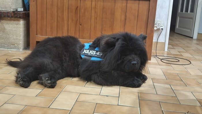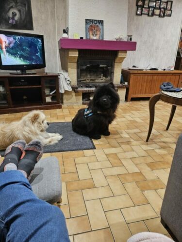 Kuma, la chowchotte , lui a fait un accueil mitigé, peu habituée à partage sa maîtresse, mais , d’un naturel peu jaloux, elle s’habitue… Il faut dire que Chuy n’est pas envahissant.
