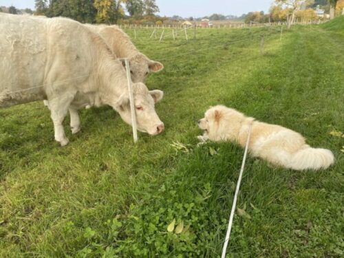 Le départ de Maïko pour sa nouvelle vie a eu lieu en juin après qu’ Anne-Cécile, l’ adoptante d’ Oréo et Mélodie ait fait connaissance de visu avec Aurore. « Aurore a installé une double clôture pour que les chiens n’aient pas accès au portail, trop bien l’idée! »