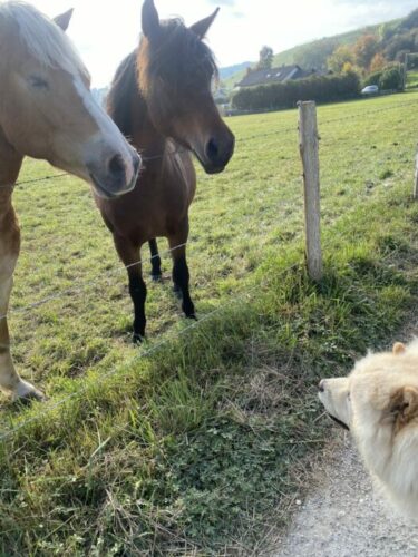 Nous n’allons pas reprendre le récit agrémenté de nombreuses vidéos de Maïko et Pumba au Chowpôle, il vous suffira de cliquer ici pour retrouver les 3 premiers mois de leur histoire parmi nous.