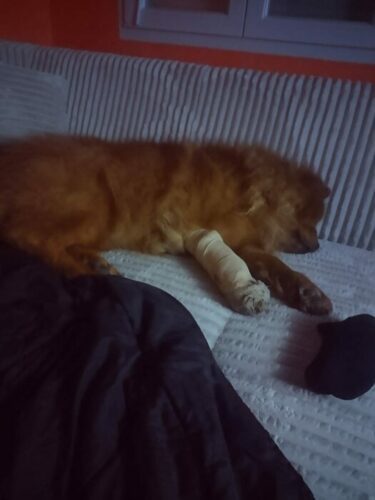 Johanna, le 26 décembre: : « Aujourd’hui nous sommes allés ôter les fils, le veto a dit que la cicatrice est belle, rien d anormal. Un soucis en moins! L atèle sera enlevée le 9 janvier..je suis impatiente pour Bouba! En attendant il va beaucoup mieux, il mange bien, il vient de nouveau vers nous, il lui reprend des moments de « folie »😁 et il a retrouvé le confort du canapé 😜 »