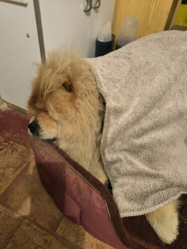 Oh! certes! il n’y aura jamais d’échographie possible couché sur le dos, et si de gros soins sont nécessaires ce sera sous anesthésie, mais Bouboule n’est pas le premier et ne sera pas le dernier chow ainsi.
