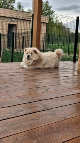 Holly, 7 ans, serait heureuse chez des personnes présentes, elle adore le contact humain et va au devant des caresses. Pas de chats, mais elle est compatible chien, en tous cas compatible chow, mâle ou femelle.