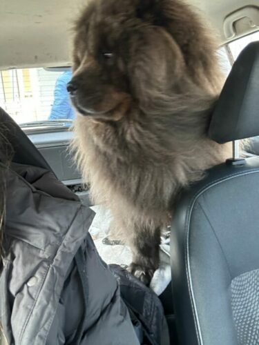 Et le voici en photo cet hiver avec son harnais de l’Atelier Napoléon que je recommande vivement à tous les propriétaires de Chows »
