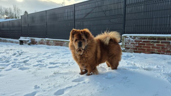 Teddy dans la neige.