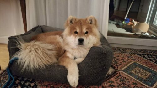 C’est en mars que Nougat est arrivé au Chowpôle. Motif ? A 8 ans ce grand chow chow tout tranquille et doux durant toute sa vie avait soudainement changé de comportement : il était devenu fugueur, parvenait à franchir la clôture malgré maints renforts, obligeait ses humains à aller le récupérer en fourrière avec les frais y afférents.