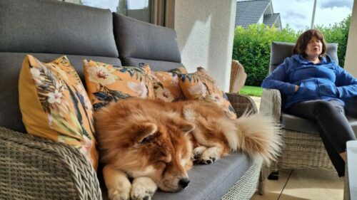 Et puis un we nous avons eu la visite d’adoptants potentiels, avec leur jeune chowchowte, Tartiflette.