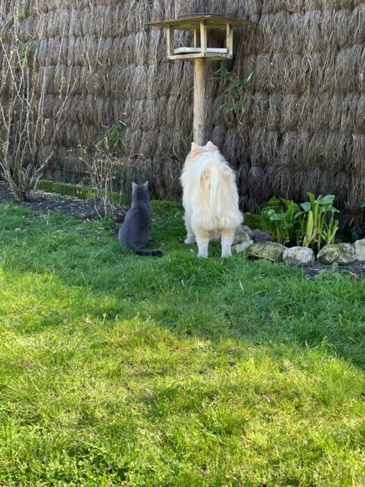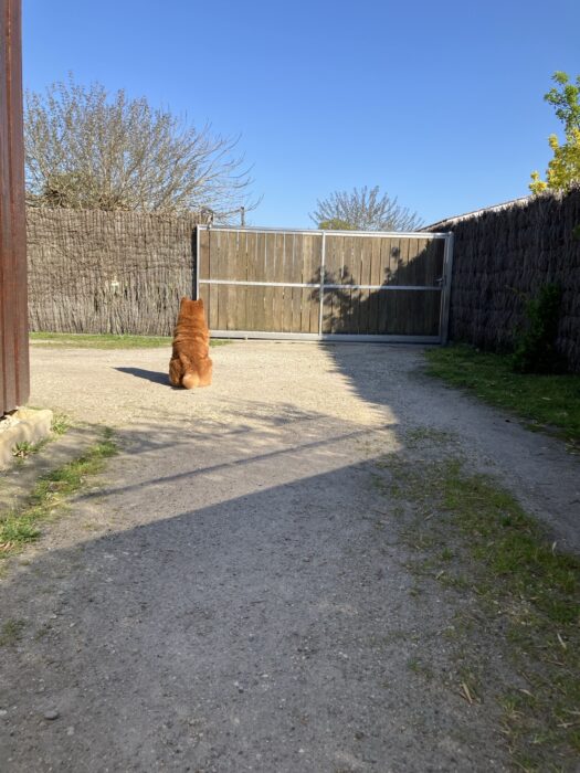 J’adore celle de Naya entre le grillage et le garage, il y a un trou au niveau de la brande et elle yeute chez la voisine (quelle concierge !)