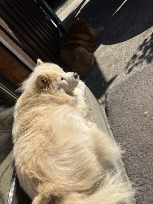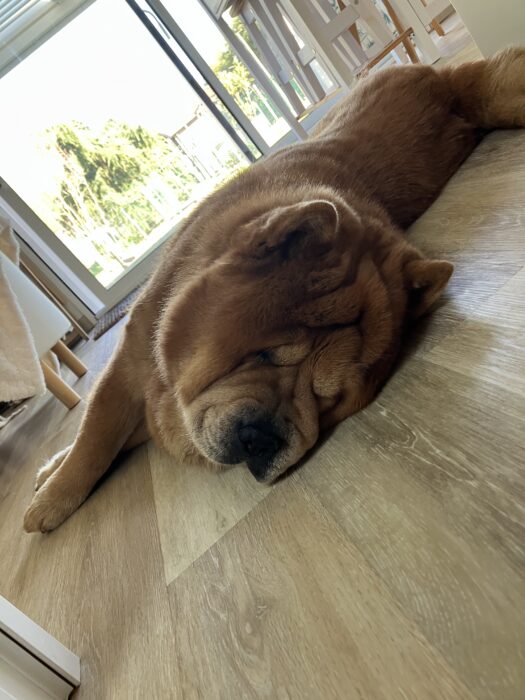 Tout le monde va bien, on a pas trop souffert de la chaleur et les chows ont leur coin d’ombre dans le jardin pour des siestes les fesses au frais.