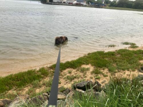 En Bretagne la vie est toujours aussi belle. Forcément il y a du sable et de l’eau à perte de vue. Quoi de mieux pour Api ?! Roulades dans le sable et baignades à tout va.