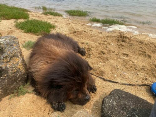 Oh et puis si tu me grattais le ventre en même temps ? Baignades et roulades dans le sable course élancée à la vitesse stupéfiante que l’on connait des chow-chows … Bref le bonheur !