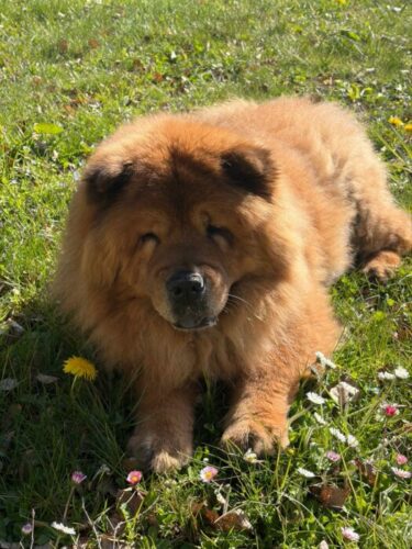 « Voilà plus de 6 mois qu’Iris fait le chemin du deuil avec nous. Au début elle était déboussolée, Hélios été son guide en promenade. Même son rapport avec les autres chien avait changé, elle ne se réjouissait plus de les croiser et ne jouait plus…elle évitait tout bonnement ces congénères. Puis nous avons décidé d’aider mieux l’association en devenant famille d’accueil. Iris a généreusement accueillie plusieurs chowpains, elle a fait preuve d’énormement de patience, de solidarité et de tolérance. »