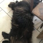 Il se porte plutôt bien compte tenu des circonstances. Nous continuons à lui donner ses comprimés pour soutenir la fonction hépatique et manifestement ça lui fait du bien puisqu’il continue à vivre sa vie comme si de rien n’était. Il mange bien et fait ses promenades matin et soir comme avant. Sa tumeur au foie est certainement bénigne sinon à ce stade il se porterait beaucoup plus mal.