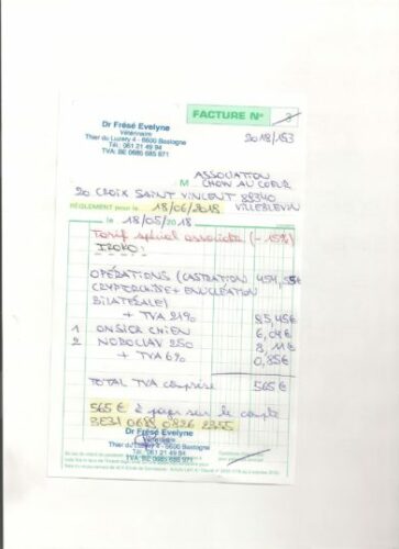 Remettre en état ce petit bonhomme coûte déjà 255.40 e, sans compter les anti-parasitaires externes et les croquettes (Taste of the Wild) que la FA prend à sa charge.