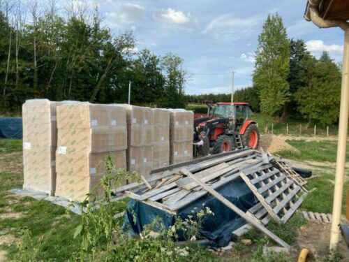 En attendant nous profitons du temps sec pour créer un chemin d’accès afin que les semi-remorques qui viendront livrer à l’automne ne s’embourbent pas: