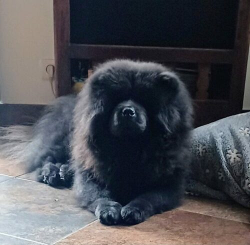 Lydie: « Elle nous apprend beaucoup miss Nounours. Et Maxou! la brosse pour Maxou chaque jour car il se gratte et parfois se blesse. Mr fait sa star: je me laisse tomber, je me tourne… balades et j’ai un grand territoire que je marque… c’est un clown! Il pèse 34kg. » (NDLR: il pesait 20 kg à son arrivée au chowpôle) »