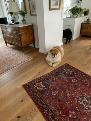 La question de la nourriture pourrait peut être rester un sujet sensible car même le retour des courses interesse Méïko, elle vérifie illico l’approvisionnement de la maison. Méïko a aussi tout de suite repéré la cuisine et il ne lui a fallu que quelques jours pour identifier le bruit du réfrigérateur: dès que je l’ouvre, elle est là. Malheureusement en Allemagne je ne trouve pas de Vache qui Rit, qu’elle adore m’a-t-on dit. Mais elle aime aussi le Babybel