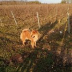 Mia (qui fait désormais 23 kg) et Chipie en balade dans les vignes.
