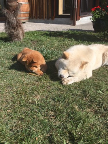 Pimentez avec un petit frère qui fera un parfait camarade de jeu , de balade et de sieste et ça donne une famille chow heureuse !