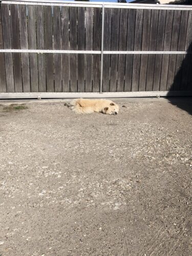 Elle profite du jardin, des balades , elle devient gardienne et aboie des que quelqu’un s’approche du portail. C’est aussi une vraie mimi cracra qui adore se rouler dans la terre et dormir sous le gros 4×4 de mon père et elle ressort … grise ! Vive les bains ! »
