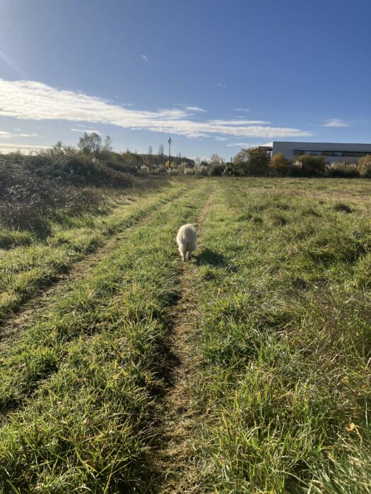 Nous avons un peu investigué pour Phalco, car il ne trottait plus autant lors des balades. Il s’avère – en plus de ses abcès chroniques au niveau des espaces interdigitaux – qu’il avait des champignons au niveau des coussinets (traitement fait), ainsi qu’une sensibilité générale des coussinets des pattes avant. Tous les soirs, Monsieur reçoit son massage avec un baume hydratant apaisant. On le voit marcher prudemment, comme sur des œufs par moments, mais cela ne l’empêche pas de continuer à apprécier ses balades. Il est simplement un peu plus au ralenti qu’avant, ce qui ne déplaît pas à Naya, qui aime traîner, renifler et gratter, et qui depuis quelque temps semble elle aussi apprécier de ralentir le rythme. Les balades se font donc dans une ambiance sereine et apaisée, ce qui est agréable pour tout le monde.