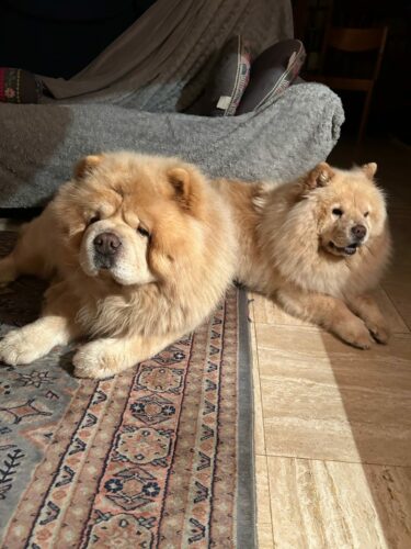 Chantal et Guy, des chowistes de longue date, voulaient apporter une copine à leur pépère Oskar. Et après avoir eu plusieurs chiots, l’adoption était devenue une évidence: quoi de plus beau que de donner une belle vie à une petite nénette qui n’aura pas eu la même chance que les chiots qui ont partagé leur vie?