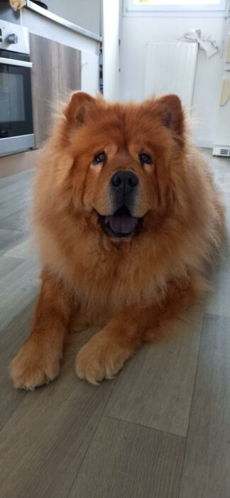 Je n’ai pas franchi le pas de la toiletter car elle craint le pulseur. Elle a été brossée, on lui a lavé les fesses (diarrhée oblige) et coupé les poils du derrière par mesure d’hygiène. On la frictionne à la serviette quand il pleut. Elle n’aime pas l’huile de coco mais je lui badigeonne sa pauvre petite queue déplumée. C’est surtout l’allure qui a changé : elle a redressé sa tête et observe fièrement l’environnement avec un visage doux et détendu. Fière comme un chow, quoi ! Et elle reste proche de nous dans la maison.