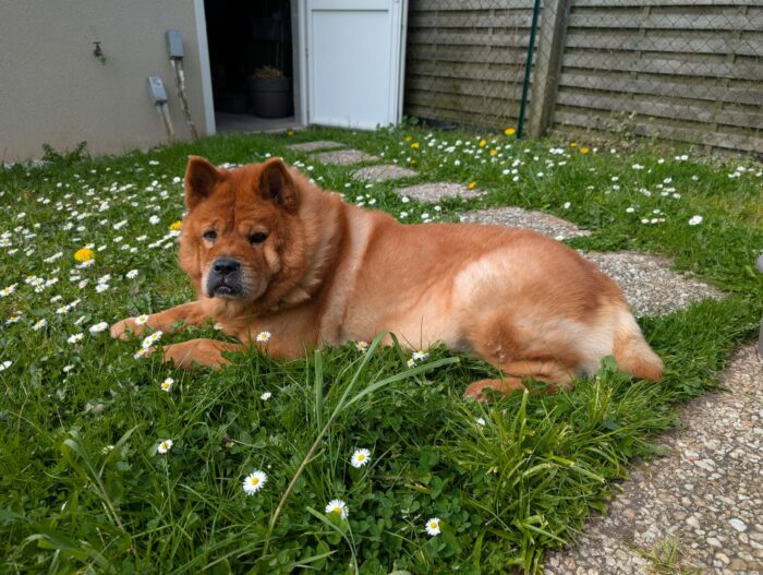 4 Mai: Victor est dans une nouvelle FA, disponible et expérimentée pour gérer le post-op d’une opération des ligaments croisés. Rappelons qu’il s’agit de 8 semaines de promenades en laisse et au pas, avec tout ce que cela comporte d’inconvénients pour un chow, que sa pudeur naturelle pousse toujours à s’isoler pour les besoins naturels.