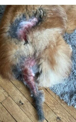 Et pour couronner le tout Nahitys a fait un énorme hot spot et un abcès sur la patte non opérée! Un abcès qui remontait jusqu’ au dos.