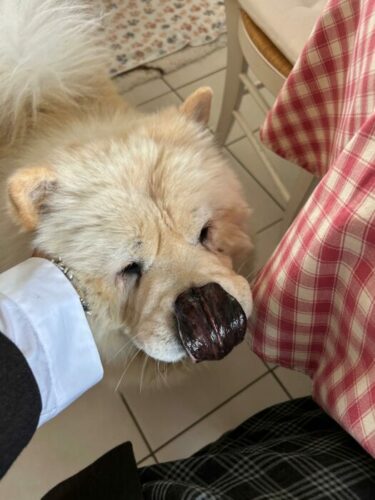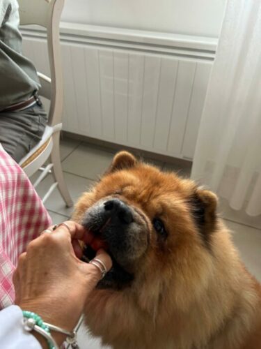 Comme de nombreux chows, Maybach a très régulièrement une injection de Librela pour améliorer sa mobilité et profiter des promenades sans qu’elles soient gâchées par la douleur.