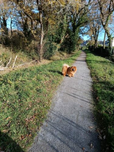 « Salut les chowpains, J’suis très fière car ce soir je me suis promenée sans laisse avec ma sœur.
