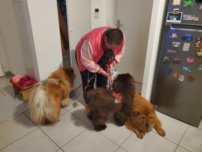 Alors il y a les adoptants de Gino, un jeune couple qui a eu non seulement la générosité d’adopter un loulou de 9 ans mais qui nous a fait confiance lorsqu’on a expliqué qu’ il fallait prendre avec des pincettes le descriptif qu’en avait fait son ex. Et de fait, durant 5 ans, Gino s’était comporté comme le plus doux des chows, le plus tolérant, le plus brave des chows chows.