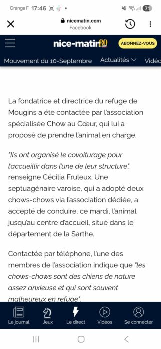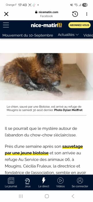 Nous avons pris contact et découvert l’histoire de ce chow chow, découvert attaché à un poteau par du ruban de chantier, en bordure d’une route nationale où il risquait de se faire écraser.