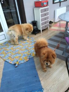 Emotion encore parce que Suki nous est arrivée terrorisée, ayant peur de tout et même de son ombre, petite flèche rousse courant se cacher au plus loin du terrain, refusant de rentrer dans la maison, mini chienne n’ayant jamais rien connu plongée soudain dans le tourbillon de la vie, vie d’amitié avec le passage de nombreux amis chowistes…