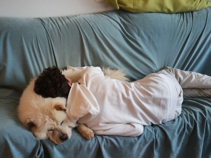 Par contre Qin-A, dans sa nouvelle vie, est devenue totalement indifférente aux petits chiens dont on nous avait dit qu’elle les détestait et raison pour laquelle elle nous avait été confiée, principalement les spitz, ce dont nous avions pu juger par nous même lors de la venue de l’un d’entre eux au Chowpôle.
