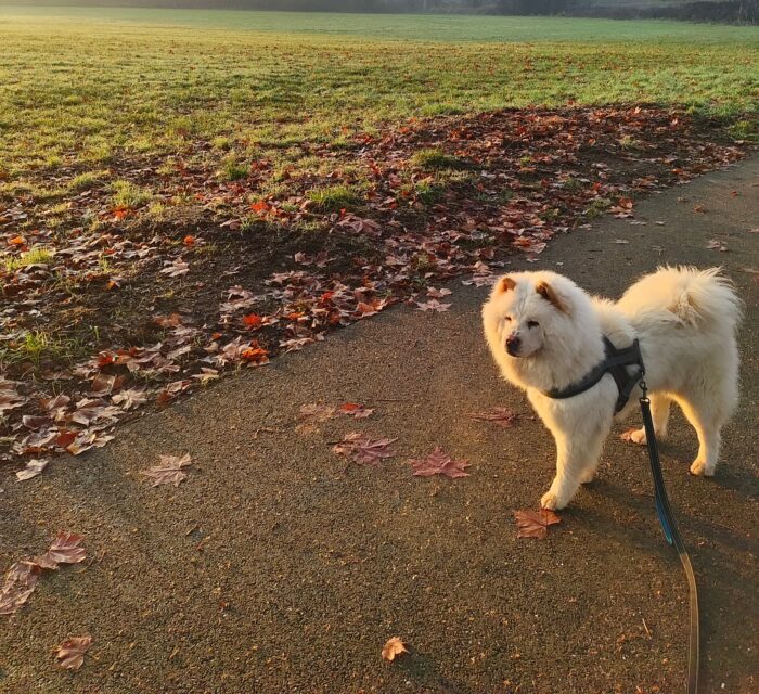 Un seul bémol: les chats! Son ex nous avait dit que Qin-A cohabitait avec des chats. Au Chowpôle Qin-A s’était montrée indifférente lors de la visite d’ Aurélie, notre voisine, venue avec son chat pour tester les chows du refuge. Mais dans sa nouvelle vie Qin-A déteste les chats, et s’il n’y en a pas dans sa famille, la petite ville en est envahie! Les rues étroites et semi piétonnes qui mènent dans les champs et la forêt regorgent de chats! ils sont partout, perchés sur les murets et prêts à détaler sous la truffe de Qin-A qui ne sait plus lequel courser. Ah! il faut les passer ces 500 m qui conduisent à la forêt! Courser les chats durant ce parcours est devenu obsessionnel pour Qin-A qui veut retrouver les endroits où elle a aperçu un matou, qui cherche à se faufiler dans les cours…. et qui aboie même la nuit lorsqu’un félin passe sous ses fenêtres. C’est comme si Qin-A s’était donné la mission de poursuivre l’œuvre de Naga: éradiquer les chats!