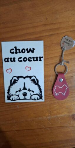 • 1 pancarte bois chow au coeur et un porte clé simili cuir