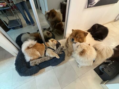 Mais revenons en arrière, à ce mois d’avril où Véronique et ses 3 chow chows rencontrent au cours d’une balade en ville une jeune femme et son chiot de 4 mois.